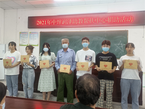 截至2021年8月,安徽省巢湖市中垾潤澤助教幫扶中心共收到90多萬元,自該幫扶中心成立以來,每年秋季開學和春節期間,都要對中垾鎮貧困家庭的大學生和中小學生以及殘疾兒童給予關愛慰問,同時獎勵在教書育人活動中取得優異成績的中小學教師。截至目前,中垾潤澤助教幫扶中心已幫扶中小學生403人,家庭生活困難大學生70人,支出幫扶資金70.5萬多元。(黃慶松 龔舒斌)