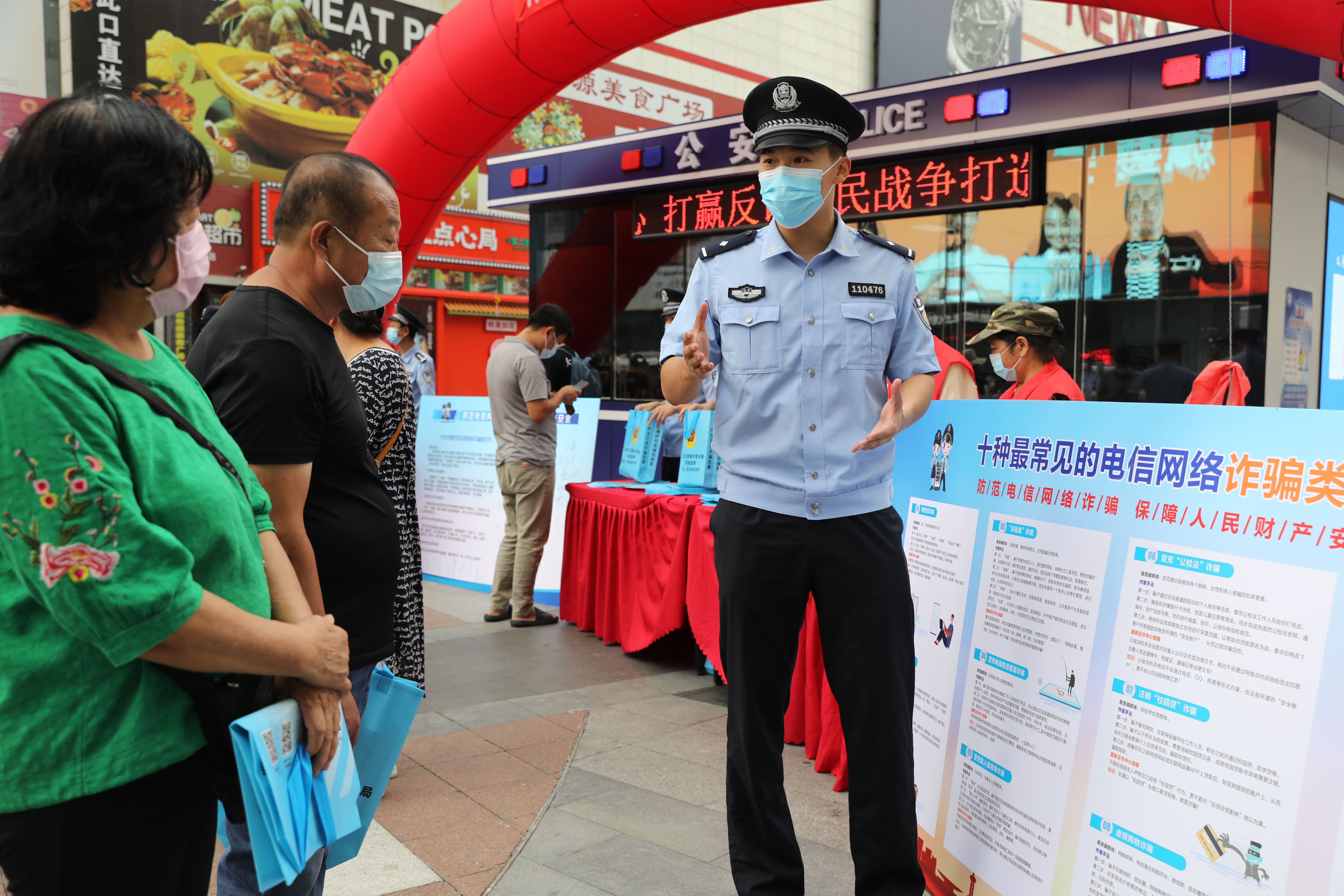 活動中,公安大東分局民警為警務車輛粘貼了反詐宣傳貼,並利用巡邏車輛覆蓋面廣、受眾人群多的優勢廣泛開展反詐宣傳,發動群眾下載註冊國家反詐中心APP。全區各派出所也紛紛為反詐宣傳獻計獻策,小東派出所製作了反詐宣傳展板和宣傳視頻,民警通過以案說法的方式向群眾講解了如何識別「假冒公檢法」「殺豬盤」等高發的詐騙,提升了群眾防詐意識;文官派出所民警走進企業、社區,將印製有反詐宣傳語的購物袋和宣傳資料向商戶發放,同時廣泛宣傳反詐知識;津橋派出所設置國家反詐中心APP註冊服務台,民警積極協助群眾完成註冊,並向其免費發放印有反詐順口溜和報警電話的三合一充電器;巡特警大隊無人機中隊利用無人機進行空中反詐宣傳,起到了良好宣傳效果。