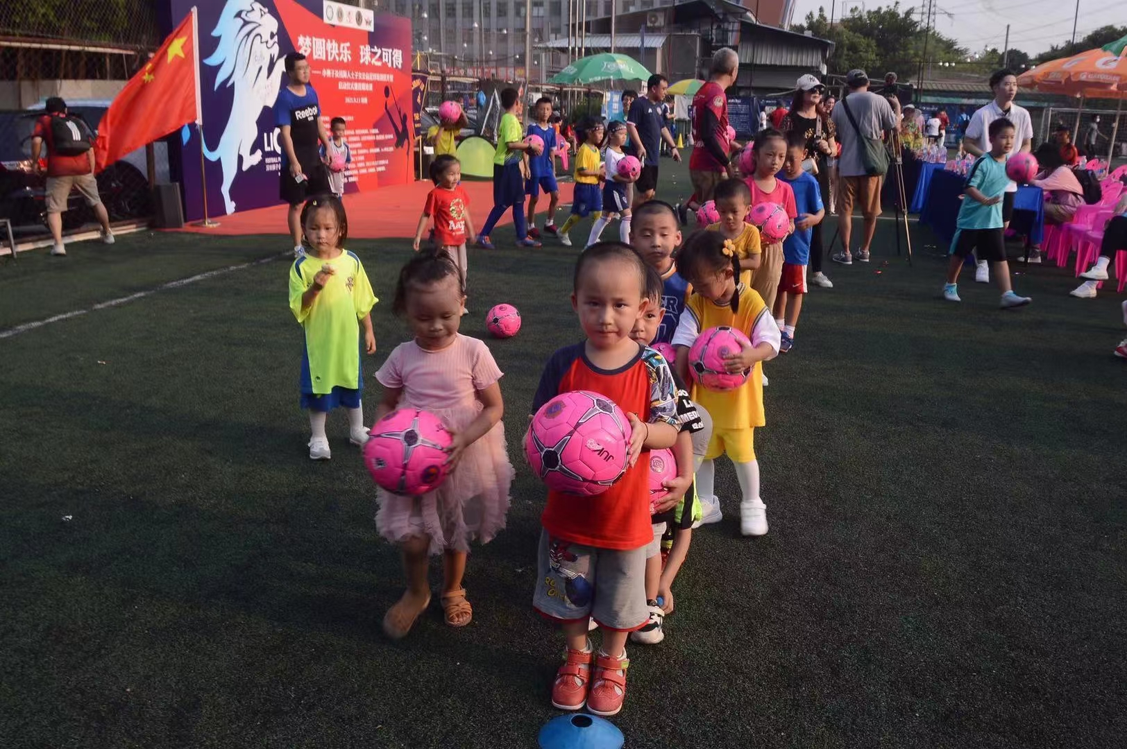 9月11日下午,深圳福田區皇冠體育中心足球場,「夢圓快樂球之可得」——小獅子及殘障人士子女公益足球培訓營項目舉辦了開營啟動儀式暨首期培訓,並為到場的獅友子女及殘障人士子女共50多個小朋友贈送了紀念足球和運動背包。