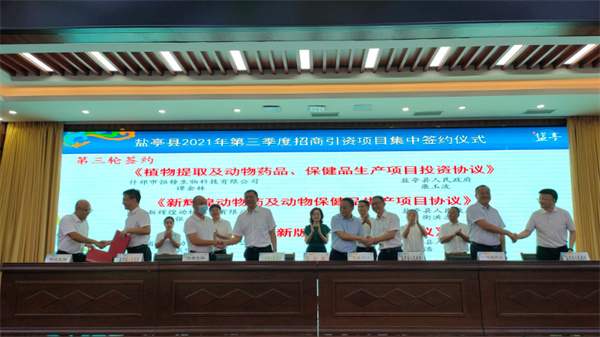 日前,四川省鹽亭縣舉行2021年三季度招商引資項目集中簽約儀式,現場簽約項目12個,總投資69.76億元。據悉,是次簽約的12個項目屬於國家產業政策支持領域,涉及文化旅遊、生物醫藥、能源化工、先進材料等。