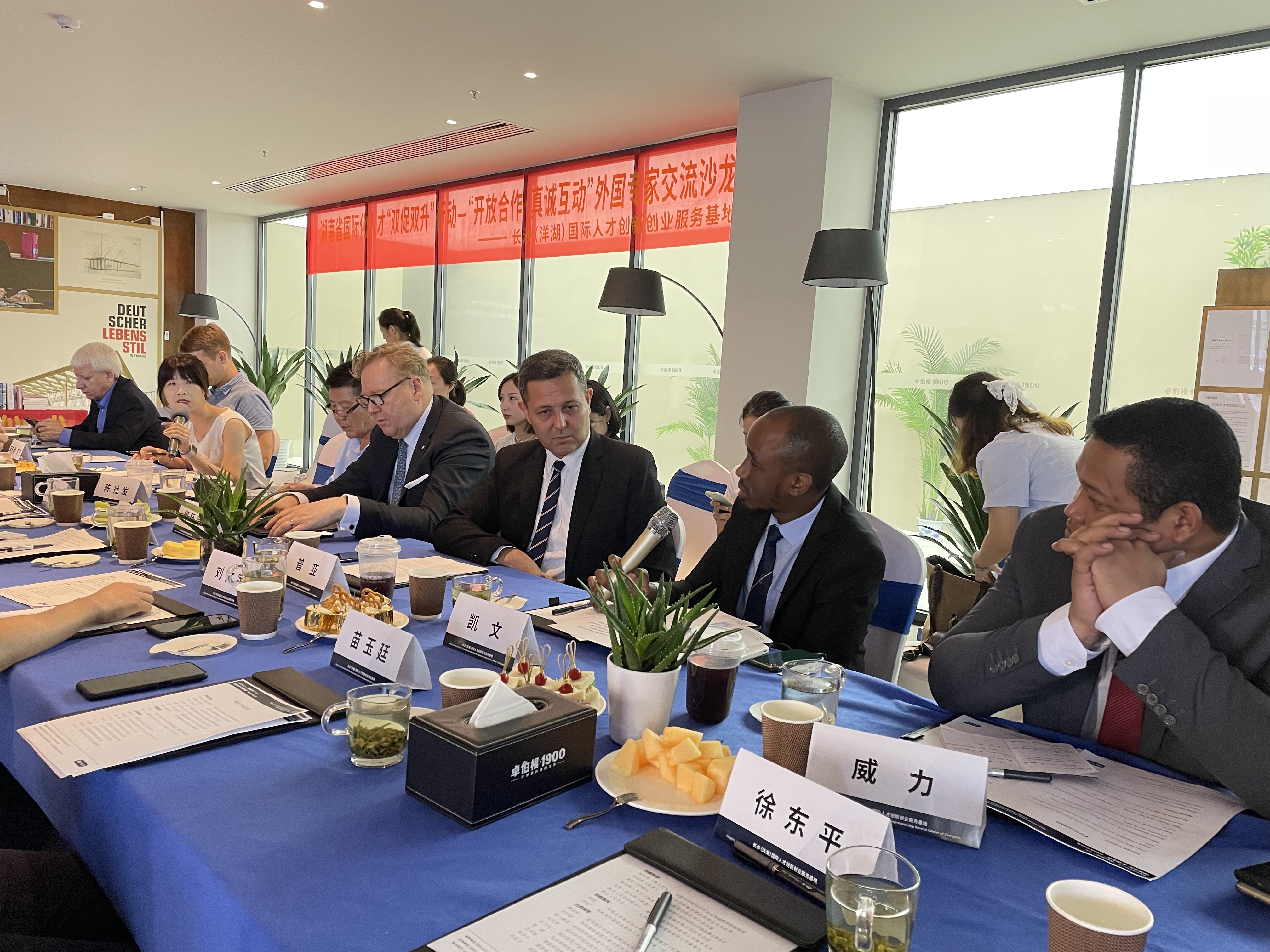 為健全湖南省外國專家服務體系, 9月14日,湖南省國際化人才「雙促雙升」行動——「開放合作·真誠互動」外國專家交流沙龍在長沙(洋湖)國際人才創新創業服務基地舉辦。來自美國、德國、澳大利亞、丹麥、伊朗、肯雅、馬達加斯加等國的7名外國專家參會,為湖南省「三高四新」戰略實施建言獻策,並就如何支持外國專家在湘開展創新創業、如何提升外國專家在湘工作便利度等主題展開深入探討。