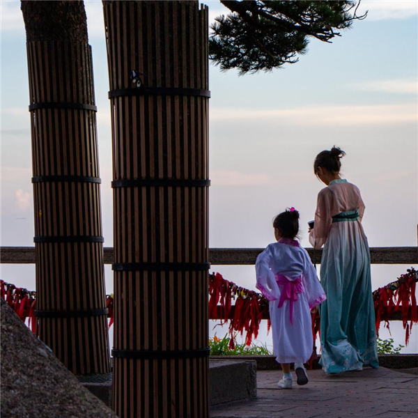 迎客松旁的高山酒店會提供專職攝影師拍照服務,著一身漢服以壯闊山川為景也是值得一試;你也可以參加中秋趣味活動,一起製作月餅、燈籠,一起賞月猜燈謎、投壺,一起觀看精彩中秋晚會,但若你喜歡安靜,那就點上一杯迎客松咖啡在網紅陽臺上體驗一次高山露天電影。