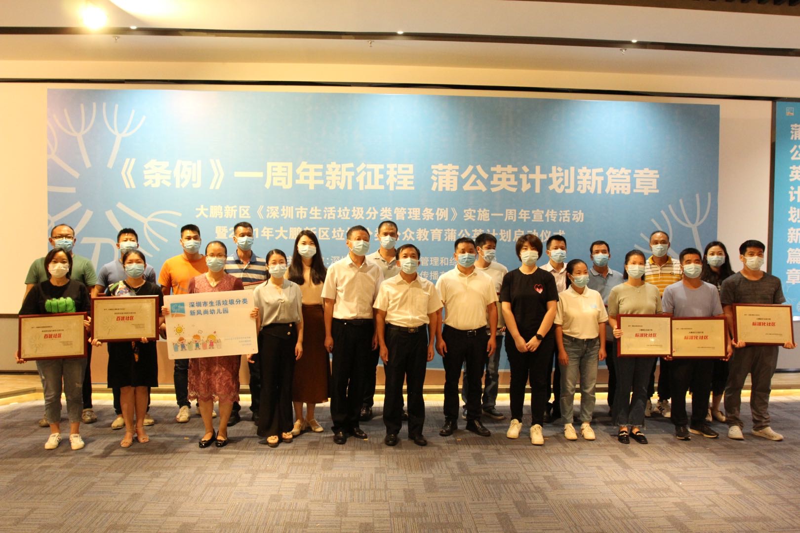 當天活動現場為轄區1個「深圳生活垃圾分類新風尚幼兒園」、5個深圳市垃圾分類百分百行動「百優社區」、16個大鵬新區垃圾分類「標準化社區」頒發獎牌。同時,以《條例》一周年的契機,為進一步壯大蒲公英講師力量,正式啟動2021年大鵬新區生活垃圾分類公眾教育蒲公英計劃。