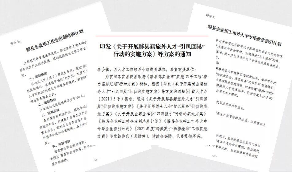 據瞭解,為進一步抓好人才定制培養工作,該縣立足長效,建立“企業吹哨、部門報到”的常態化對接溝通機制,定期開展專班企業走訪活動,掌握企業用工缺工動態。同時,實施“以財引才,以才求財”戰略,突出財政站位,對學生個人與定制企業簽訂3年以上勞動合同,並繳納社會保險費滿8個月以上,由財政統籌資金按照本科、大專、中專分別給予學生本人10000元、6000元、4000元一次性就業補貼。對建立校企培訓實習基地並支付學生實習費用的企業,按照1000元每人次標準,給予一次性掛鉤定向培養補貼。對各類院校或勞務公司單次組織20人以上畢業學生到黟縣工業企業實習3個月以上的,給予院校500元每人次一次性獎勵。