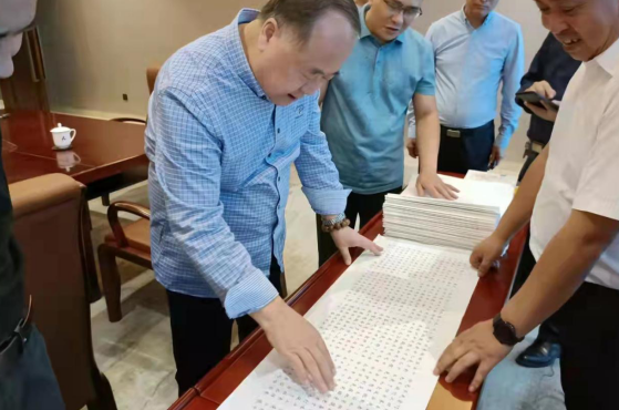 欣聞莫言來武威講學考察,白建新激動得徹夜難眠。當即驅車從民勤趕到武威,聆聽莫言講座、目睹偶像的笑容,激動地不知所措。在鑑賞《蛙》硬筆書法長卷現場,莫言的平易近人、學者風範,一再感染着書法作者白建新和現場所有的人。