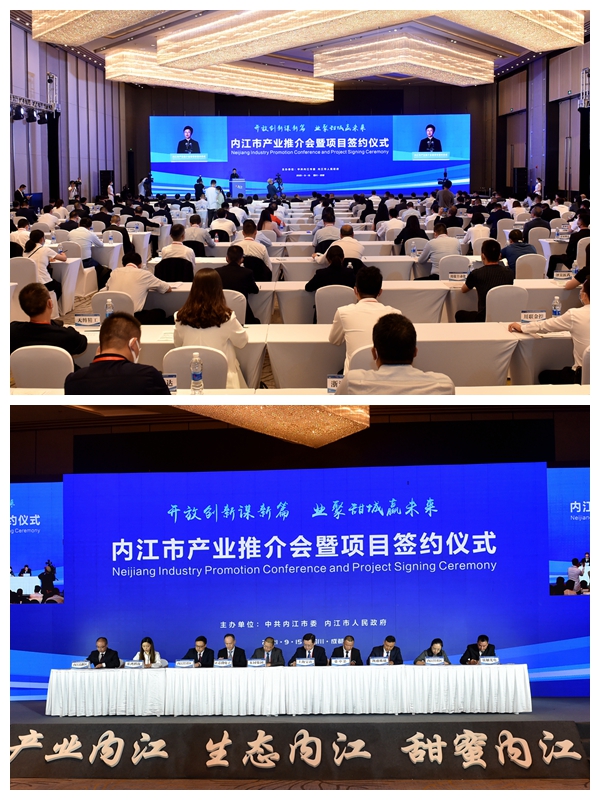 在第十八屆中國西部國際博覽會開幕前夕,9月15日下午4時,四川省內江市在成都舉行以「開放創新謀新篇 業聚甜城贏未來」為主題的產業推介會暨項目簽約儀式,推介內江新經濟產業集中發展區承接平台等45個項目(平台),簽約頁岩氣資源就地轉化利用等43個項目。