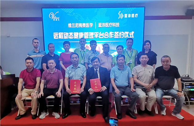 9月15日下午,珠海維蘭尼梅奧醫學科技有限公司與廣東藍沛醫療科技有限公司在珠海市海泉灣舉行了合作簽約。維蘭尼董事長段和平、維蘭尼總經理李旭東、樂力享(維蘭尼下屬公司)總經理梁振南;藍沛醫療董事長李全生、藍沛CEO郭文發、藍沛健康管理學院院長金小榮等出席。