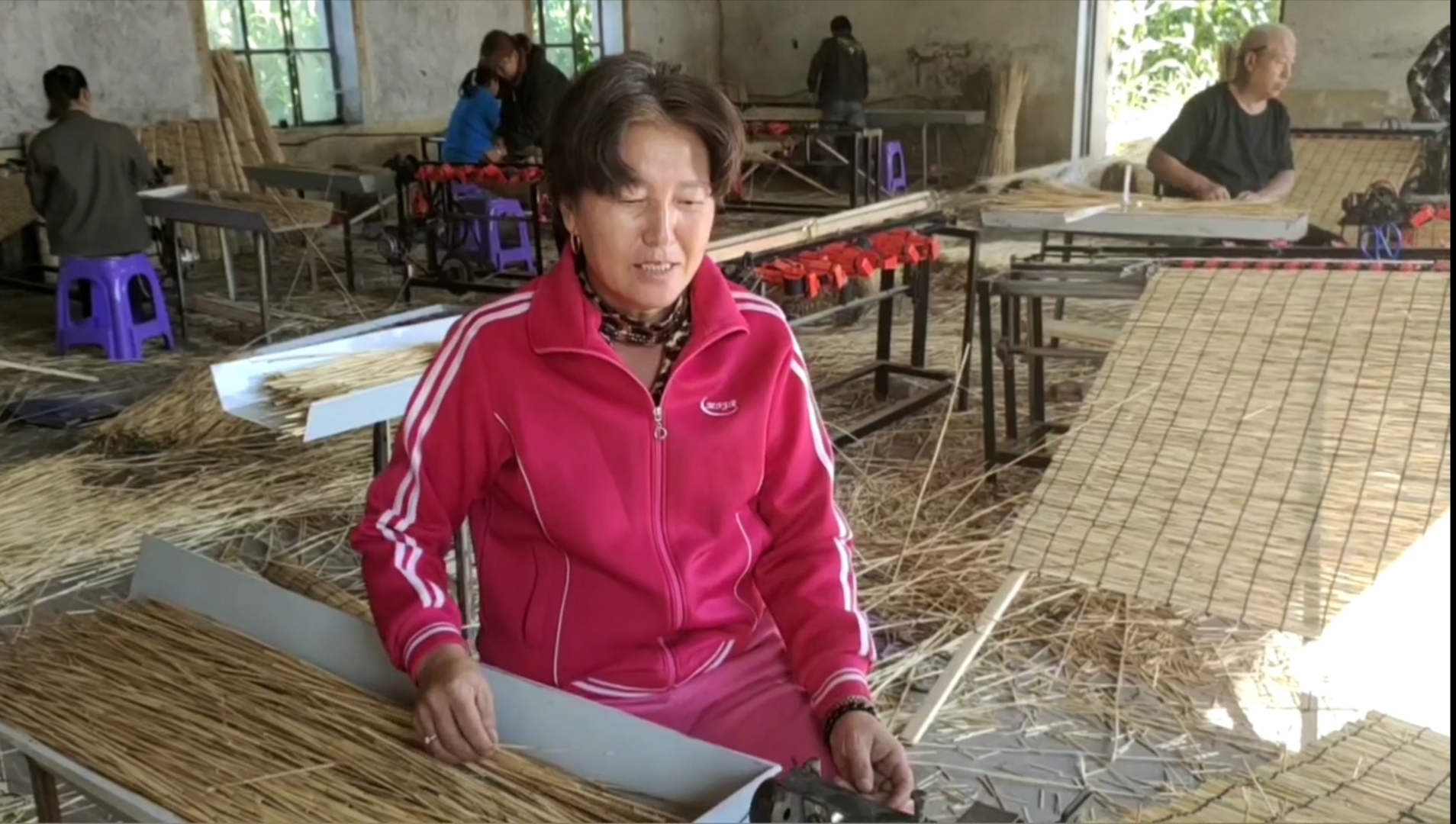村里對這個貧困家庭也非常照顧。葦簾廠成立之初,村里領導主動找馬鳳霞,希望她能嘗試打葦簾增加點家庭收入。抱着試試看的想法,馬鳳霞在技術人員的幫助下很快就上手了。拿到第一筆收入後,她的積極性更高了。