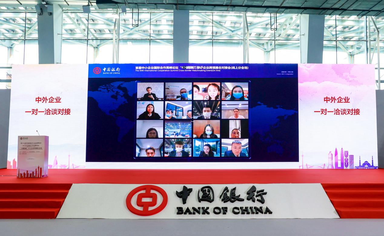 通過「線上+線下」以及「1個主會場+36個境內外分會場」的形式大力撮合,來自海外的近300家中小企業通過「中銀e企贏」平台參與線上撮合,境內參會的近1000家中小企業通過「線上+線下」「自動匹配和主動選擇」相結合的方式開展撮合洽談,參會企業創歷史新高。