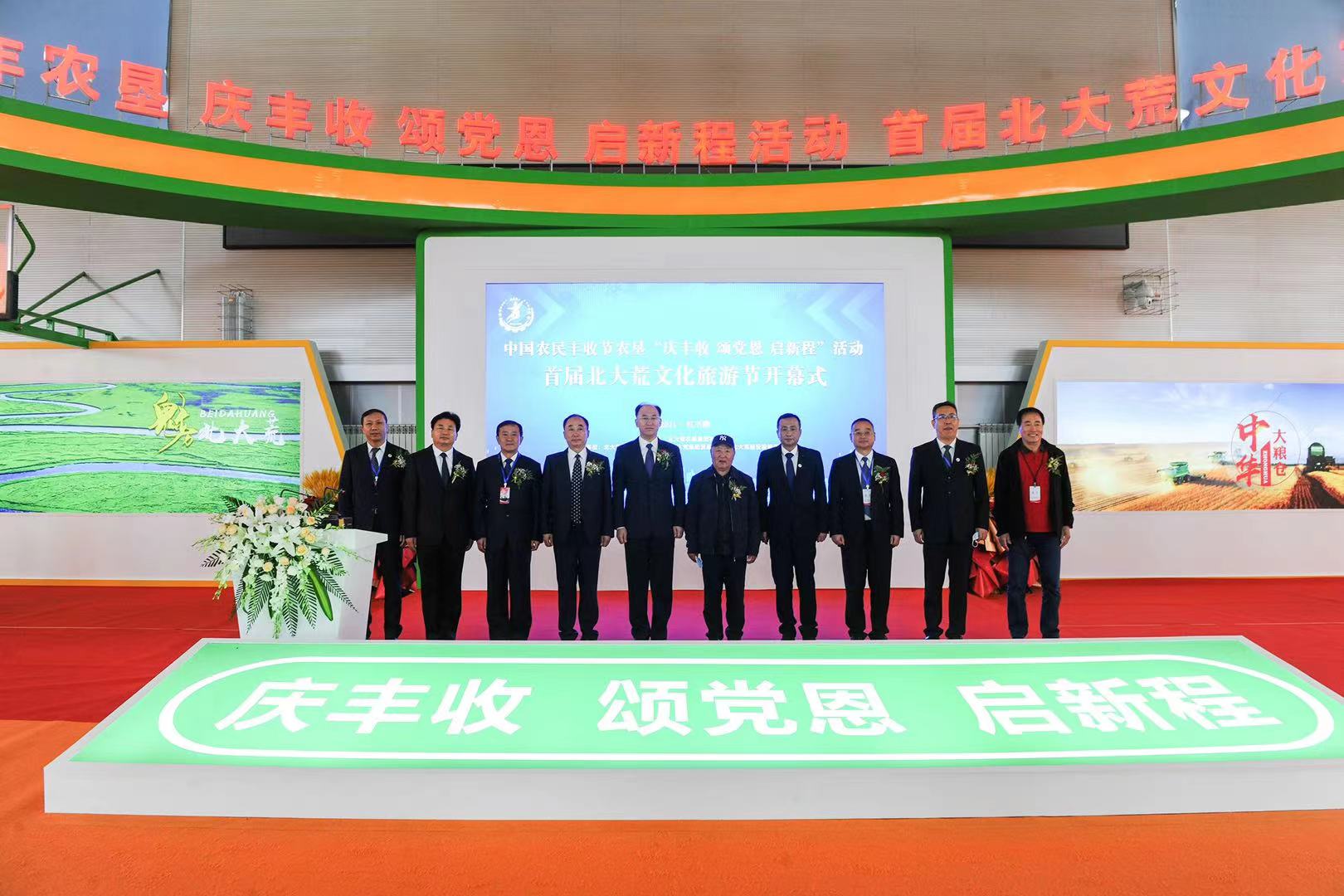 萬里金黃,豐景一派。9月16日至17日,中國農民豐收節農墾「慶豐收、頌黨恩、啟新程」活動、首屆北大荒文化旅遊節在北大荒農墾集團紅興隆分公司隆重舉行。活動期間共開展了農墾品牌優質產品展示展銷「豐收集市」、北大荒文化旅遊特色產品和現代農業信息成果展、《走向輝煌》文藝演出、「美景如畫、暢遊農墾」之中國農墾旅遊品牌推介、北大荒集團招商推介會等8項活動。活動期間,共簽約大項目4個,總金額5.4億元。