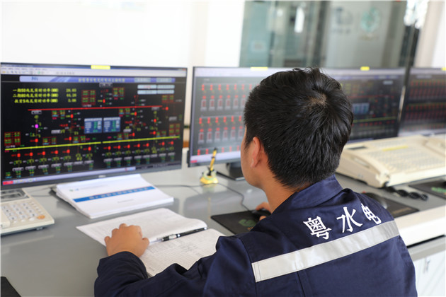粵水電光伏電站工作人員正在觀測運行情況
