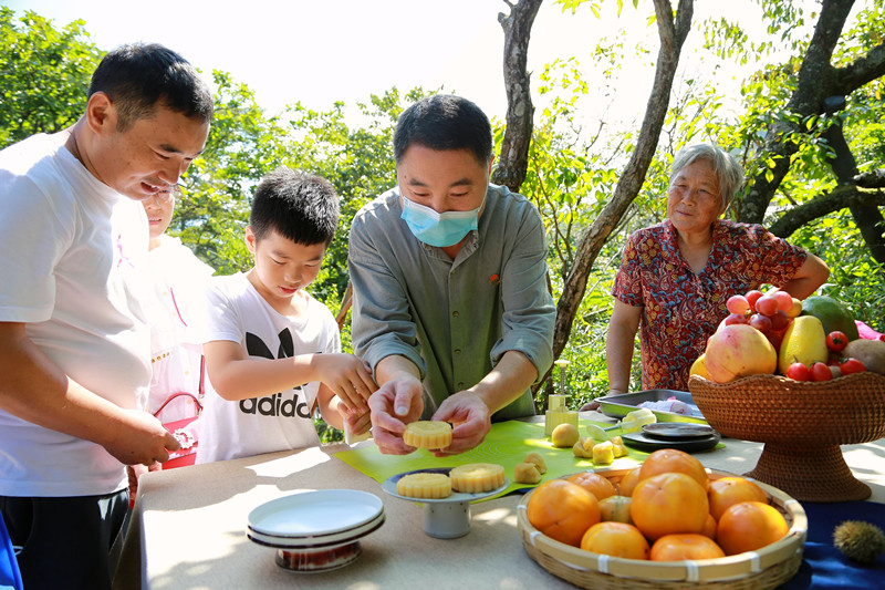 來自湖南的劉俊麟小朋友看著自己親手製作的月餅,十分開心,他說到“中秋自己做月餅好有意義,特別有成就感”。他的母親盧益鳳女士告訴記者,這是全家人在第一次黃山之巔過中秋,在這個特殊的節日裏,能夠帶孩子一起體驗中國傳統習俗的樂趣,特別的有意義,非常好。