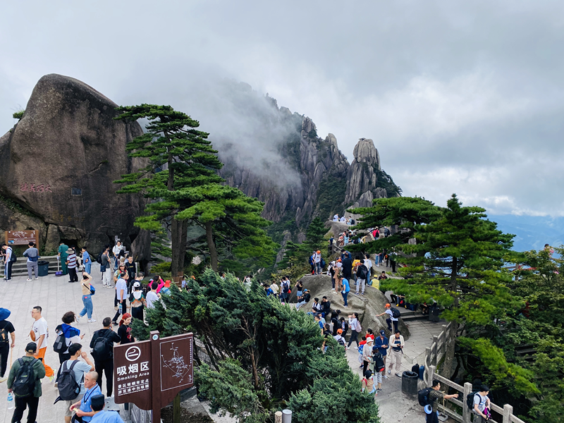 此前假期首日中秋假期第一天,黃山風景區秋高氣爽,景色宜人,旅遊舒適度較高,共接待遊客6585人。來自上海的遊客冒維益告訴記者,今年趁著中秋假期過來看一下祖國的大好河山,剛剛路過了始信峰,大自然的鬼斧神工讓人震撼,非常壯觀。