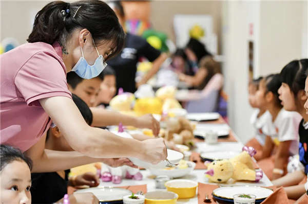 當日中午,香蜜園準備了豐富的午餐,孩子們圍坐在一起吃了頓「團圓飯」。「這是什麼?燒雞?好香啊!」「沙拉冰冰甜甜的,真好吃!」大家一邊品嘗着美食,一邊分享着節日的快樂。餐廳內一片歡聲笑語,洋溢着濃厚的節日氛圍。7歲的小童(化名)在奶奶的陪同下參加了這次活動,他告訴筆者:「雖然爸爸媽媽不能陪我一起過中秋節,但是和小朋友們在一起,今天玩得很開心,回去我要打電話告訴媽媽。」