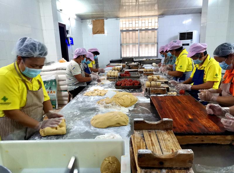 白土鎮月餅廠正在用傳統製作工藝製作月餅