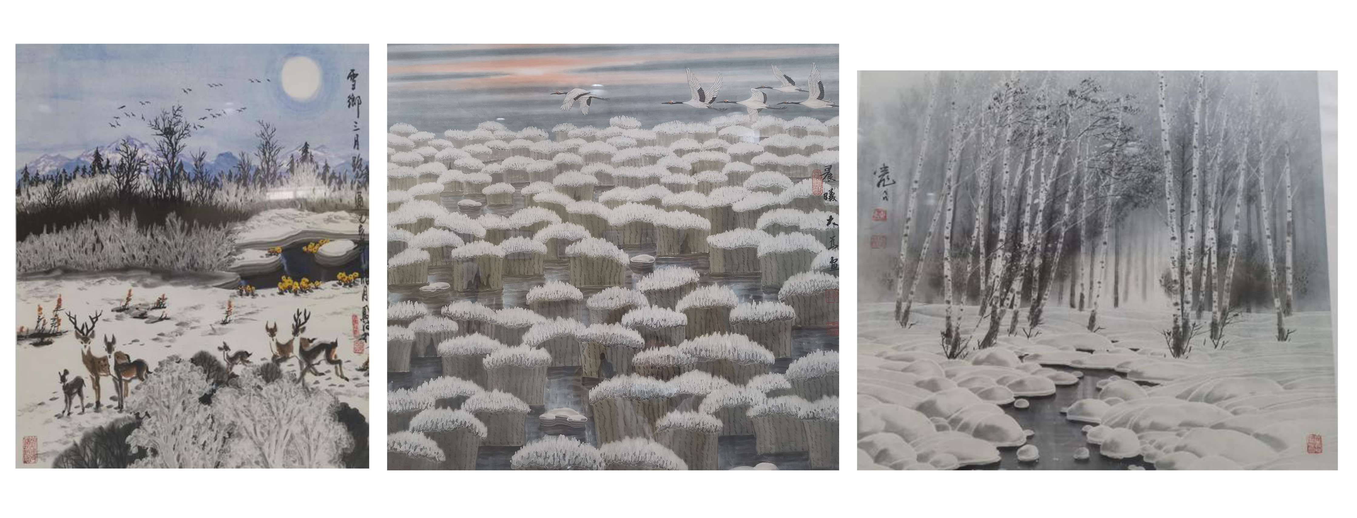 展覽期間,集中展出冰雪山水畫創始人於志學先生及冰雪山水畫派的99幅優秀作品。該畫派融匯各民族特有的地域文化,在北方山水中注入中華筆墨傳統,採擷現代世界繪畫創作理念,創作出大量描繪祖國大好河山的優秀畫卷。