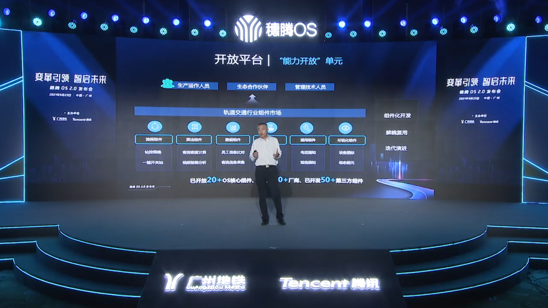 據廣州地鐵集團副總經理蔡昌俊介紹,穗騰OS2.0重點打造了物聯平台、策略引擎平台、大數據平台、算法平台和開放平台等五大核心平台,具有標準化、組件化、低門檻、開放式的核心特點。穗騰OS不僅致力於助力軌道交通產業的智慧化升級,經過少量適配性的定製研發,還可廣泛用於智慧交通、智慧城市等更多複雜工業領域。