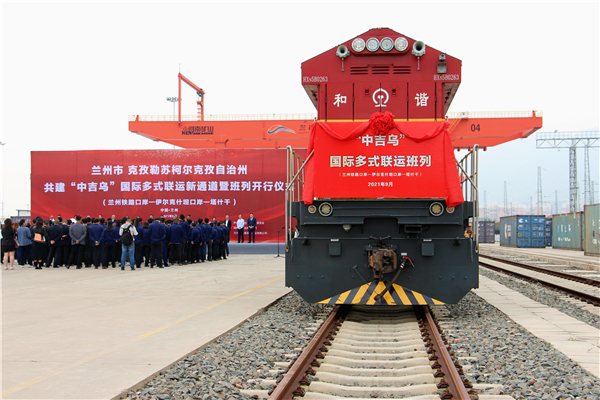 25日,甘肅蘭州與新疆克孜勒蘇柯爾克孜自治州兩市州共建「中吉烏」國際多式聯運新通道暨班列開行儀式在甘肅(蘭州)國際陸港舉行。