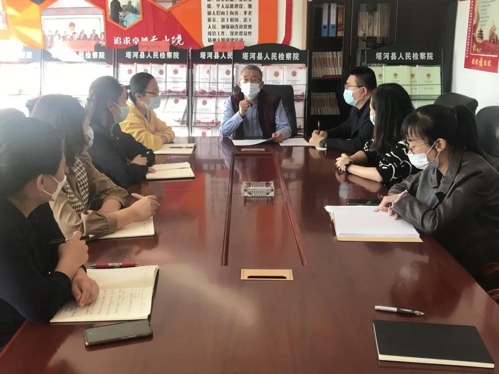 日前上,黑龍江塔河縣人民檢察院召開院務會,傳達地委副書記、行署專員、地區應對新冠肺炎疫情工作領導小組指揮部指揮長徐向國在地區疫情防控指揮部第123次例會上的講話精神,並對疫情防控工作進行部署。塔河縣檢察院黨組成員、副檢察長主持會議,中層部門負責人參加會議。