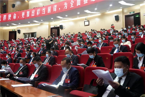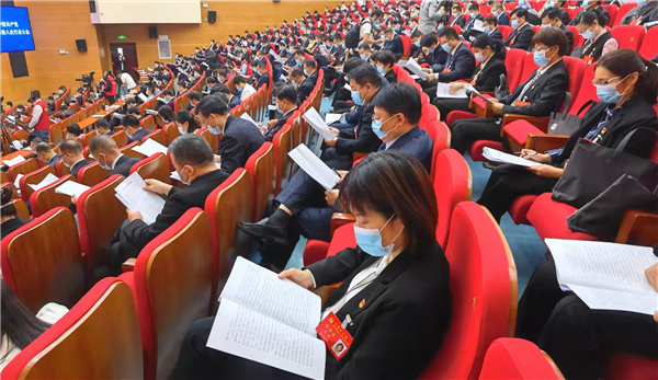 會議現場,黨徽閃耀,紅旗鮮艷,「奮勇爭先擔使命,更加出彩當前鋒,為全面推進現代化漯河建設不懈奮鬥」的橫幅,鼓舞人心、催人奮進。
