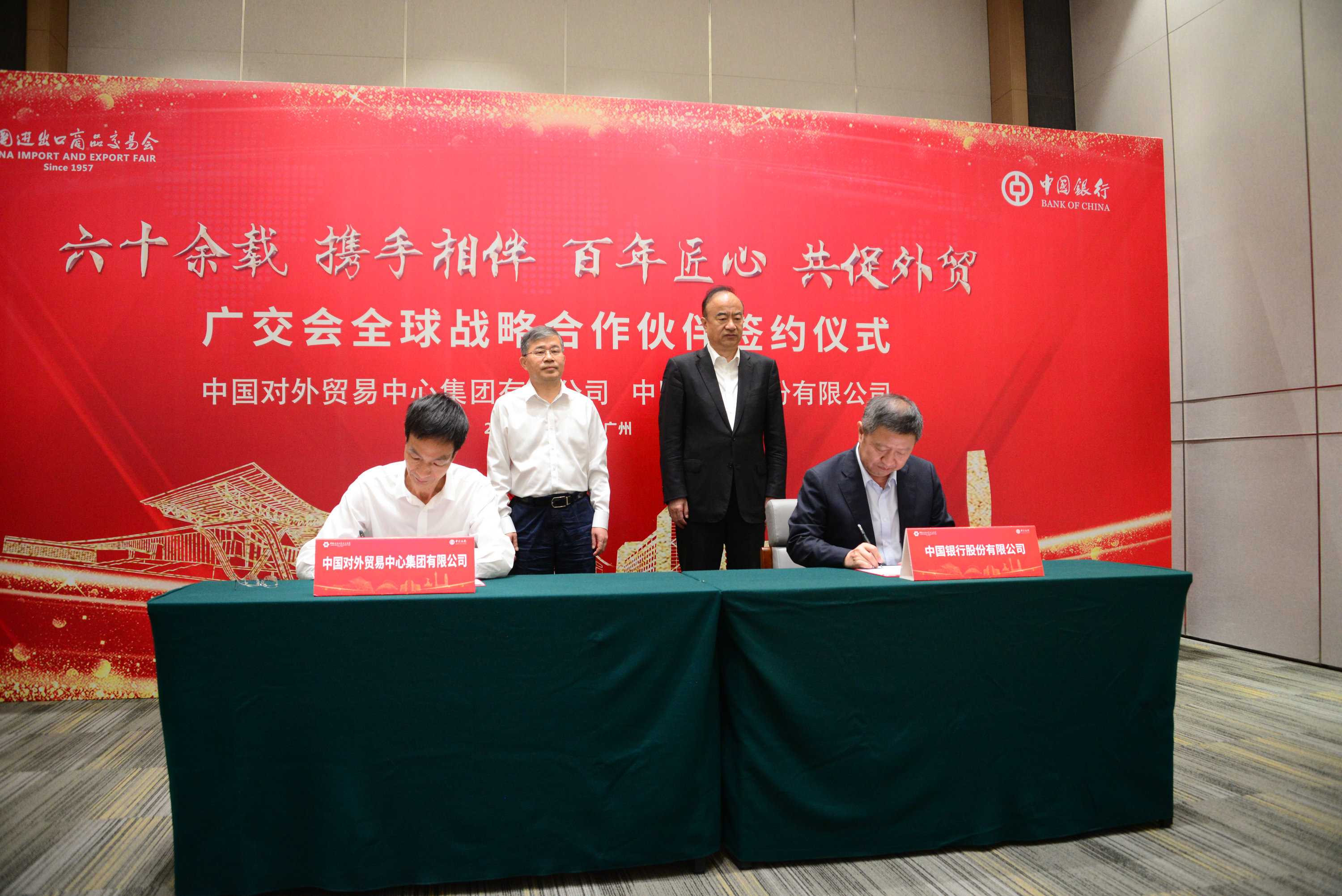 當天,中國銀行廣東省分行李瑞強行長、李智君副行長,中國對外貿易中心集團有限公司儲士家董事長、葉繼獎副總裁參加簽約授牌儀式。中國對外貿易中心集團有限公司向中國銀行授予「全球戰略合作夥伴」牌匾。