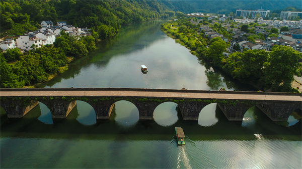 坐竹筏漂蕩在橫江之上,全程約30分鐘,可盡攬兩岸江景,途徑建於明萬歷時期的登封橋古建築。