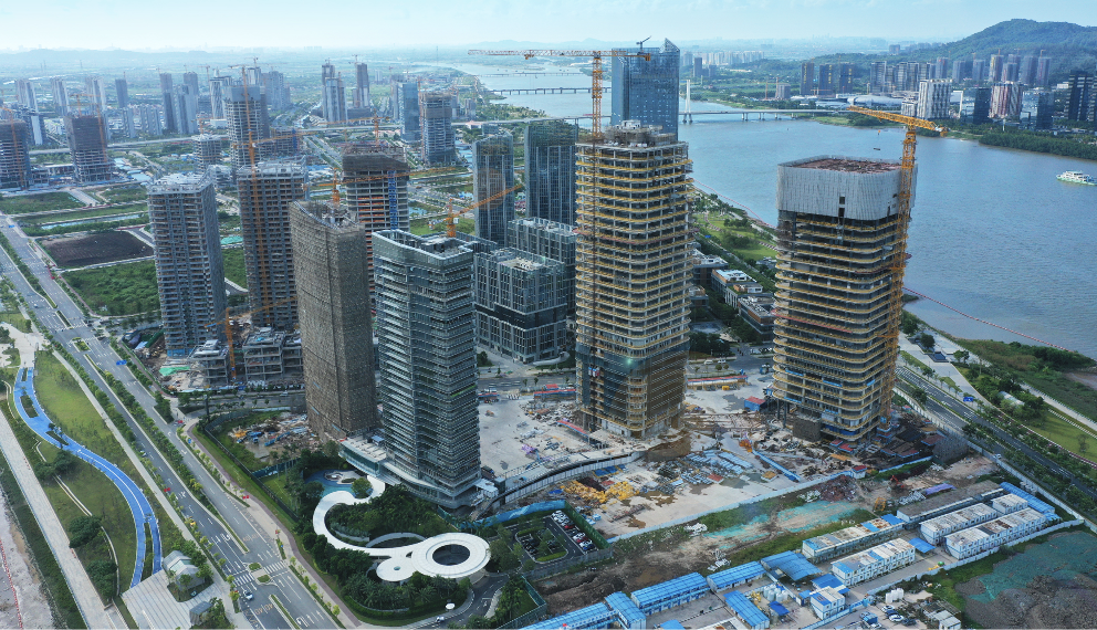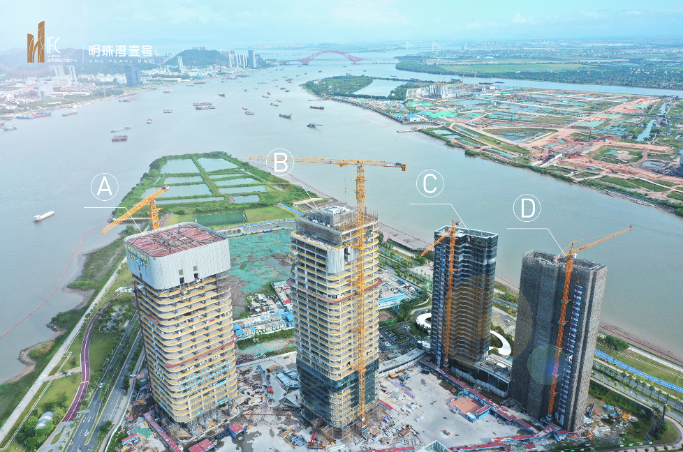 目前項目按計劃推進建設,已完成B棟、C棟、D棟塔樓封頂(其中C、D棟為明珠灣壹號),A棟塔樓主體目前施工至28層,預計2022年第一季度封頂(機電、幕牆、裝修等專業工程同步穿插施工)。