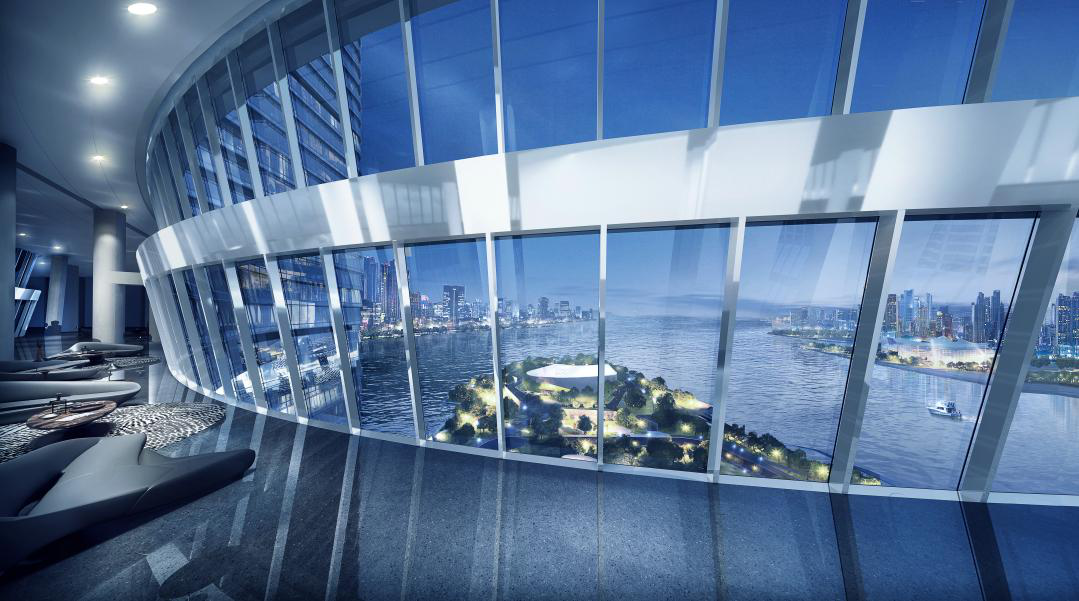 通過「靈山之翼」的概念,越秀IFC在兩座塔樓間創造了一座100米懸空的空中連廊,創造了一個城市「空中客廳」。「空中客廳」落座於1000平米的空中大堂中,北可眺江,南可觀海,這裡將成為靈山島尖俯瞰城市景觀的佳所,也將見證南沙的發展和城市變遷,成為明珠灣區的城市名片和獨特景觀。在整體的建築上,越秀IFC達到了設計與技術的統一,這棟百米上空的「海空會客廳」、南沙超級新地標,正是在設計與技術的相輔相成之下構築而成,它們成就了越秀IFC的宏偉壯觀。