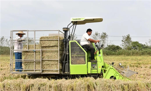 9月25日上午,在安徽省巢湖市中垾鎮業平家庭農場稻田裡,安徽日昱再生能源有限公司早早就派人來到稻田裡,組織人員回收水稻秸稈。隨着轟鳴的機器聲,一台秸稈打捆機「吐」出一個又一個秸稈方塊包,然後用大型拖拉機運到企業加工再利用。該農場負責人祝業平告訴筆者,以前中秈稻機械收割後,會留下很高的秸稈,給秋種工作帶來很多不便。今年收割期間,該公司就主動上門聯繫秸稈回收,本着雙贏的目的,日昱公司無償將稻田裡秸稈清理並全部回收,這為接下來的油菜播種工作省去很多人力。