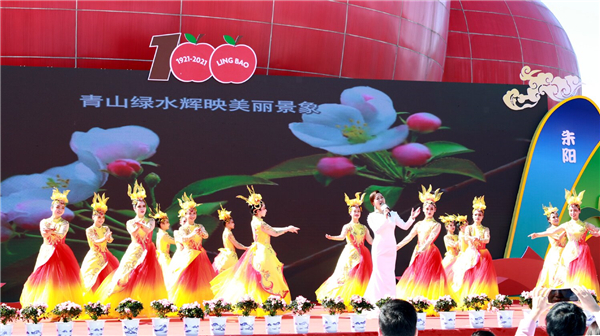 上午9時,伴隨着喜慶的文藝節目,2021年中國農民豐收節·第十五屆中國(靈寶)蘋果文化節·靈寶蘋果百年慶典儀式在開場舞《果實擂擂》中正式拉開帷幕。