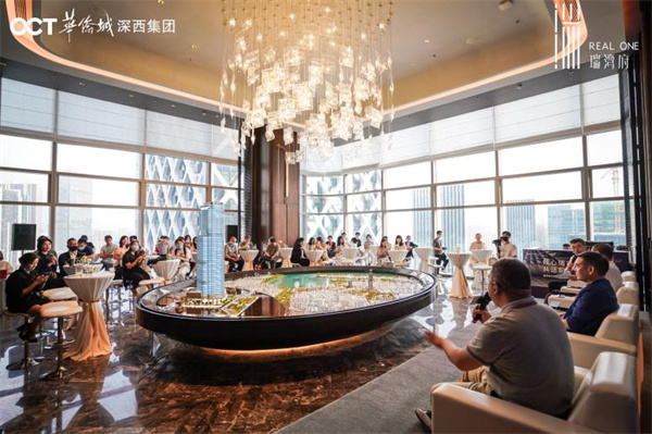隨着媒體嘉賓們的深入,珍藏了許久的瑞灣府雲端展廳的神秘面紗緩緩落下,瑞吉酒店的格調與前海塔尖的圈層品位在此合鳴。