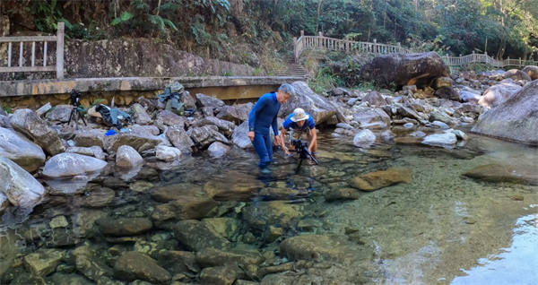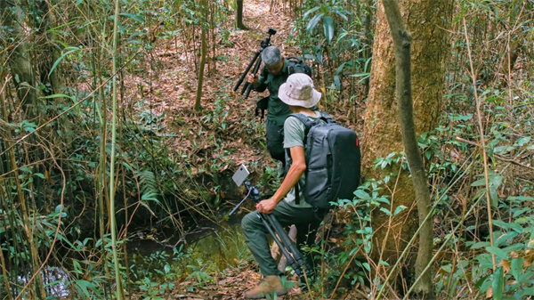 攝製組在深山密林中拍攝紀錄片