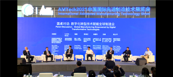 中國國際先進製造技術展同期舉辦“世界先進製造業大會(AMC2021)”,主論壇邀請到華中科技大學教授,中國工程院院士,現任中國機械工程學會理事長李培根教授、德國機床製造商協會執行董事Dr.-Ing. Wilfried Sch?fer先生;美國機械製造技術協會會長Douglas K. Woods先生;中華人民共和國原對外貿易經濟合作部副部長龍永圖先生,分別發表“企業數位化轉型的深化與拓展”,“國際‘umati’活動與國際和德國機床行業的經濟形勢”,“數位化轉型技術 – 製造業發展的必經之路”,“數字技術賦能的中國先進製造業前景光明”的主題演講。同時,大會還圍繞“數位化轉型技術賦能全球製造業” 邀請到粵港澳先進製造產業聯盟理事長, 中國國際貿易促進委員會機械行業分會原會長孫喜田先生、卡爾斯魯厄理工學院(KIT)生產科學研究所(wbk)管理董事會成員,生產系統部門負責人Prof. Dr. Gisela Lanza女士、全球先進製造研究所總經理Lucas Bretz先生、通快(中國)有限公司總裁楊剛先生、武漢華中數控股份有限公司董事長陳吉紅先生、山崎馬紮克(中國)有限公司副總裁單耀東先生、蔚來汽車執行副總裁、北美汽車人協會(NAAP)主席沈峰先生、樹根互聯股份有限公司副總裁陳義平先生進行圓桌對話,對傳統企業在面對“數字化轉型技術”挑戰時的洞察和理解,討論激烈,觀點犀利,引燃全場氛圍。