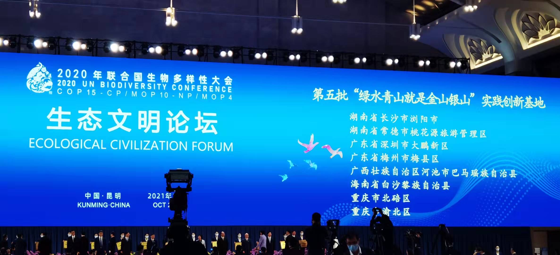 10月14日,《生物多樣性公約》第十五次締約方大會(COP15)「生態文明論壇」開幕。開幕式舉行了第五批國家生態文明建設示範區和「綠水青山就是金山銀山」實踐創新基地表彰授牌儀式,深圳大鵬新區獲授「兩山」實踐創新基地稱號。