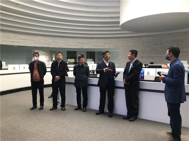 哈爾濱市委常委、哈經開區黨工委書記、平房區委書記劉興閣(左四)向東北林業大學校長李斌(右二)介紹哈南智慧城市綜合運營中心