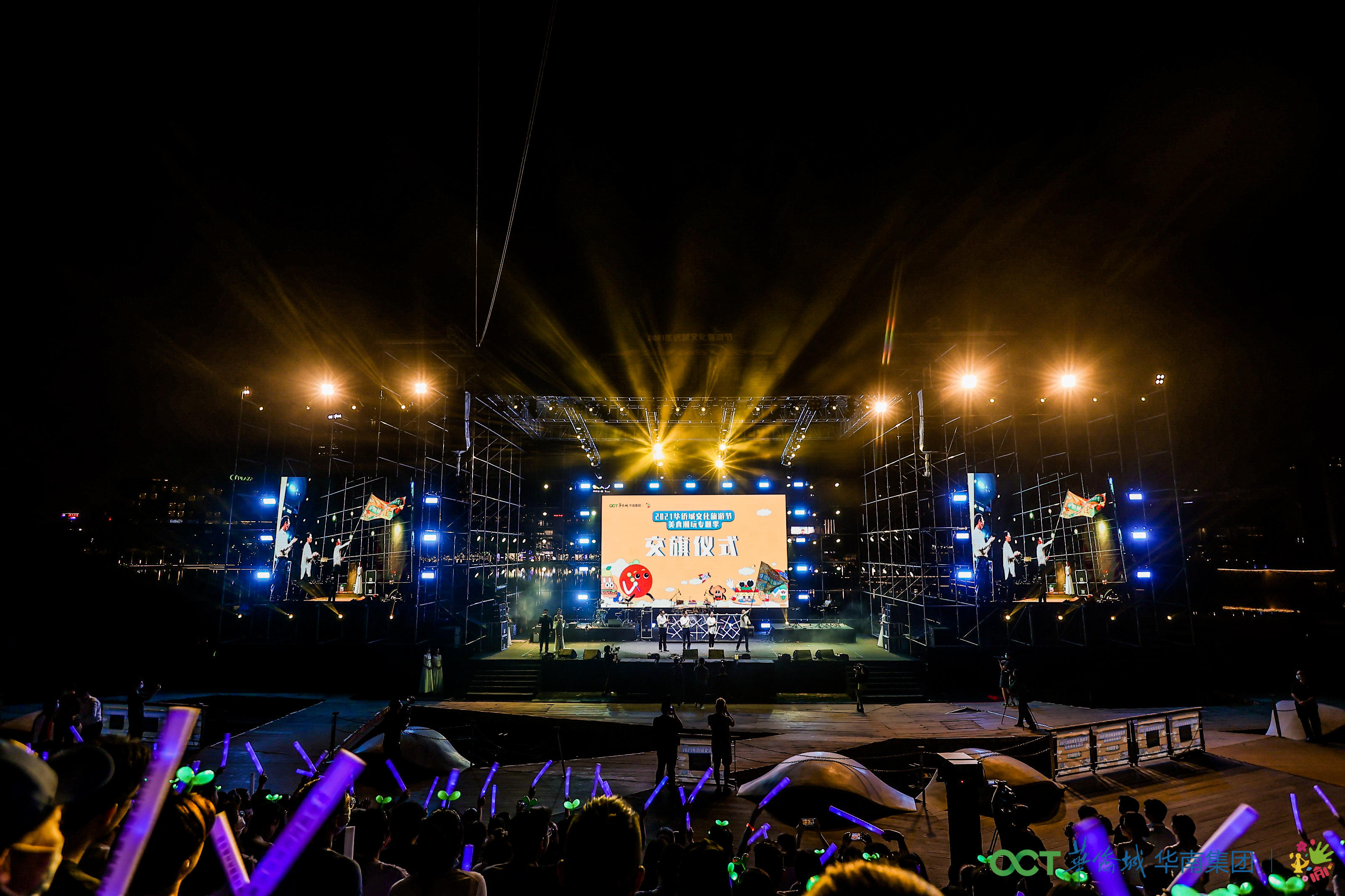 「橙」風破浪,歡樂再出發,歡樂海岸推出「美食市集+音樂現場」新玩法,燃爆2021華僑城文化旅遊節華南集團美食潮玩專題季的開幕現場。橙浪音樂現場在水秀劇場超大型臨海水域舞台燃動全場,痛仰樂隊、夸克樂隊、時間不夠以後樂隊以燃爆音樂掀起橙色熱浪,與現場觀眾一起見證華南集團「美食潮玩專題季」的激情啟幕,開一場揮灑汗水的潮玩派對。深挖各項目獨特的在地文化屬性,多景區深度聯動,華南各地項目齊聚花橙美食市集,54個美食攤位展示各地文化風采。