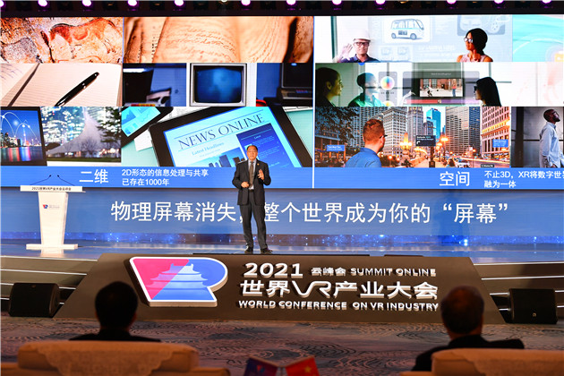 全球智慧共襄盛會,重磅嘉賓真知灼見。在主旨演講環節,中央廣播電視總台編務會議成員姜文波介紹了VR技術在媒體應用與研究新的發展;HTC中國區總裁、虛擬現實產業聯盟副理事長汪叢青演講介紹了元宇宙的概念;虛擬現實產業聯盟秘書長、中國電子信息產業發展研究院副院長劉文強分析了虛擬現實產業發展的現狀;華為Fellow、華為河圖總裁羅巍介紹了華為在虛擬現實的VR融通實踐探索,利亞德傳媒集團總裁姜毅介紹了讓虛擬走進現實的生活化運用。VR數字化技術正廣泛應用於人們生產生活的方方面面,科技改變未來,未來無極限。(周萬里 郭美勤 黃凌媛)