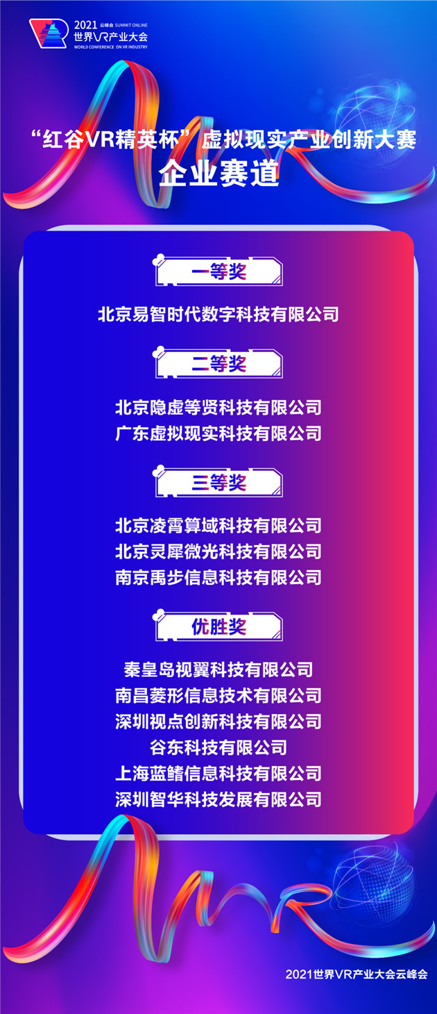 10月20日,由江西省南昌市人民政府、虛擬現實產業聯盟、江西省科學技術協會共同主辦的2021「紅谷VR精英杯」虛擬現實產業創新大賽展開了創新應用賽道決賽和企業賽道半決賽賽事。經過緊張激烈的角逐,創新應用賽道和企業賽道已決出全部獎項。