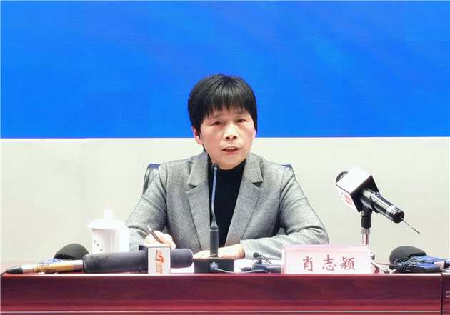 安徽省統計局總統計師、新聞發言人肖志穎介紹有關情況,並回答記者提問現場(孫軍/攝)
