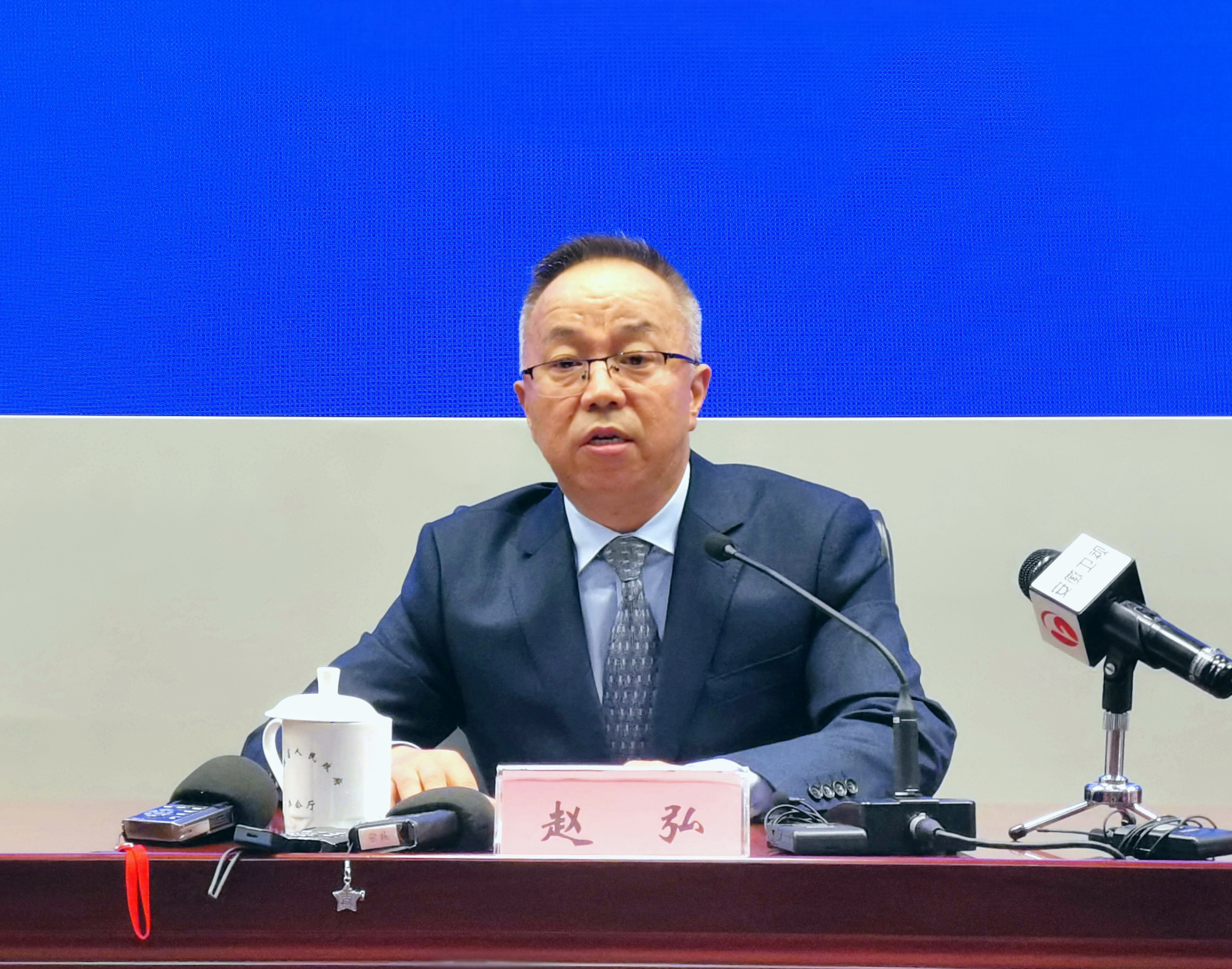 安徽省稅務局黨委委員、總審計師趙弘介紹相關情況,並回答記者提問現場(孫軍/攝)