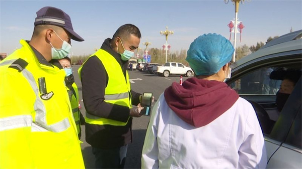 酒泉市公安局交通警察支隊川北高速公路大隊輔警李良告訴筆者:「對來玉車輛及人員逐一進行掃碼、測溫、登記,重點對中高風險地區的車輛進行勸返。目前工作一切正常。」