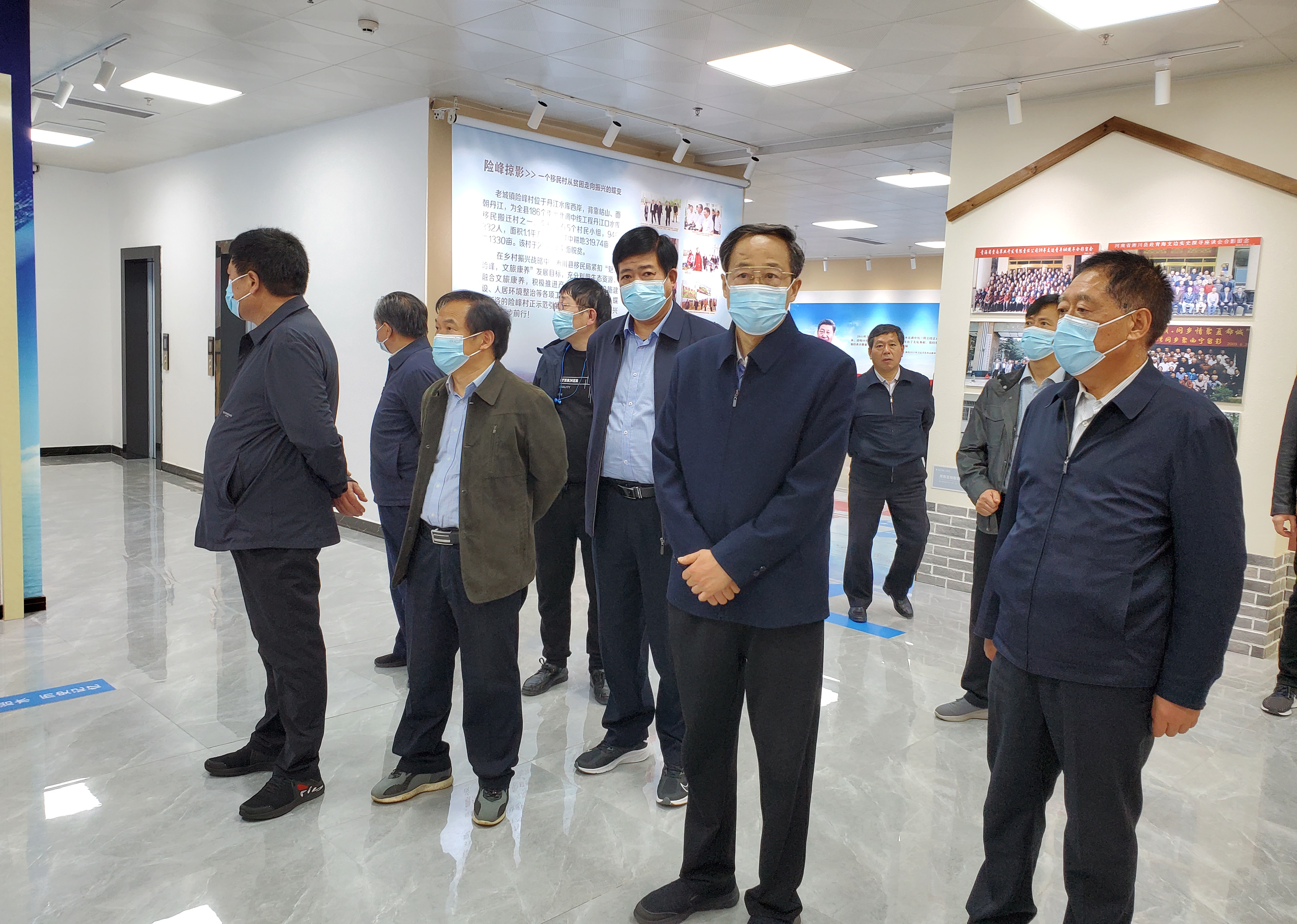 隨後,調研組一行來到南水北調移民展覽館,展覽館佔地面積15畝,建築面積4000平方米,主要展示了1958年至2014年南水北調中線工程建設期間國家領導人所提出的南水北調宏偉規劃、中央省市各級領導對南水北調建設的高度關注和支持,以及南水北調中線工程建設的里程,淅川縣廣大幹部群眾為實現一庫清水送北京所做出的犧牲和奉獻。一張張照片,一件件實物,真實再現了當年移民的寶貴瞬間,見證了淅川人用大寫鑄就的南水北調移民精神。