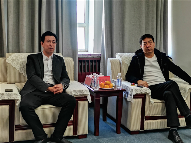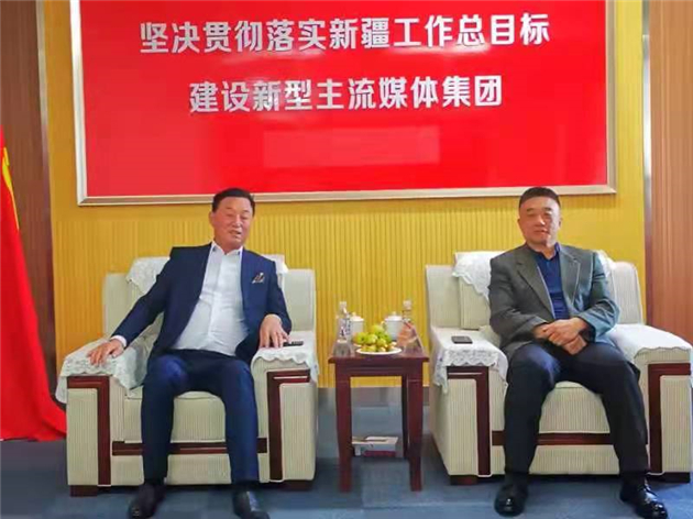 新疆河南工商企業聯合會會長孫磊(左)與新疆EMBA企業家商會會長李勝剛(右)親切