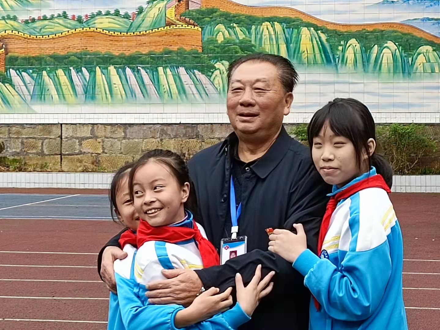 「馬蘭花,馬蘭花,風吹雨打都不怕,請問要開幾朵花?五朵花!」語音剛落,一群孩子爭先恐後奔向一位慈眉善目的老者,將他緊緊圍抱。被孩子們圍着的老者就是四川省巴中市平昌縣同州街道關心下一代工作委員會執行主任牟萬金。