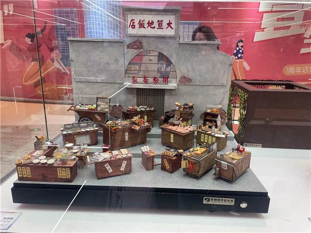 走進展區,懷舊港風撲面而來。一個個栩栩如生、美輪美奐的微型作品吸引了觀眾的眼球。在這裏,你可以看到精緻復刻、細節做到牙籤大小的鎖頭都真實還原的香港歷史建築以及懷舊街市,也可以仿佛身臨其境般感受到長洲太平清蘸搶包山、大坑舞火龍等名場面。更厲害的是,包括潮州打冷、西式咖啡茶點等美食,以及香港的舊街和傳統店鋪等也被五色俱全地搬進了這個微型藝術展中。