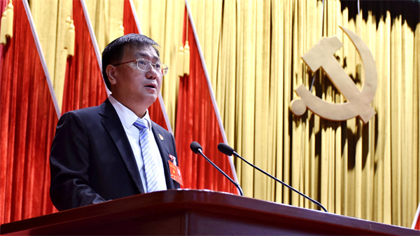 河源市委常委、市委秘書長、龍川縣委書記孔德勝向大會作報告