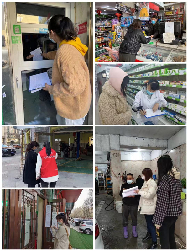 自10月27日開始,新成街道按照包保制度,由包保領導、包保科室及區住建局、區園林局和區財政局下沉幹部每天對各社區九小場所開展「回頭看」巡查工作。對要求暫汀業的小旅店、洗浴、網吧等商家進行通知、循環檢查,全面落實「應停盡停」;對超市、飯店等商家落實疫情防控「三寶」、消殺記錄、防火安全等情況進行了細緻檢查,對個別落實不到位的商家進行現場督導整改,叮囑商家落實好主體責任;對小區巡查「三寶」落實情況,紮實做好疫情防控工作。