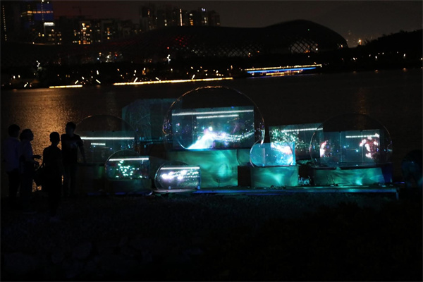 本次藝術季邀請的深圳本土藝術家杜健翔帶來的是《無界·如魚得水》,這件作品主旨在於表現深圳這座城市重視知識和尊重人才的品質,以及開放和包容的態度。