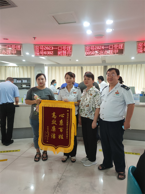 近日,福建漳州市薌城區稅務局駐漳州市行政服務中心窗口收到來自香港同胞杜薇夫婦贈送的錦旗和感謝信,讚揚稅務工作人員「心繫百姓、高效廉潔」。