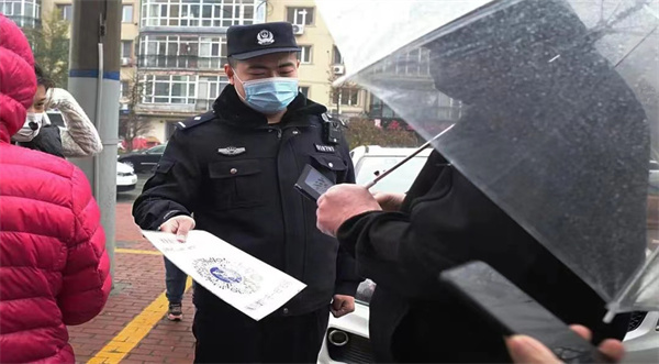 哈爾濱市公安局以派出所現有警力為基礎,統籌全局,進行警力調度和補充。執勤警力提前與辦事處、社區工作人員對接,通過設置警戒線、提示牌、測試廣播喇叭等,做到「人員較多蛇形隊形、人員較少直線隊形」,保持群眾一米間隔「不交流、不聚集」。
